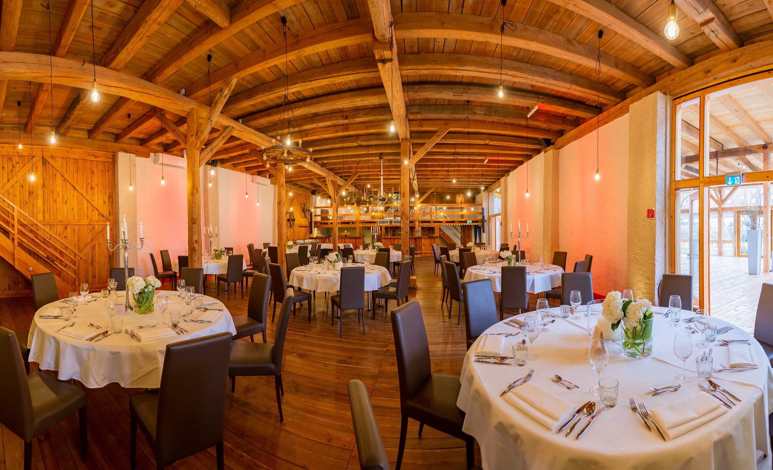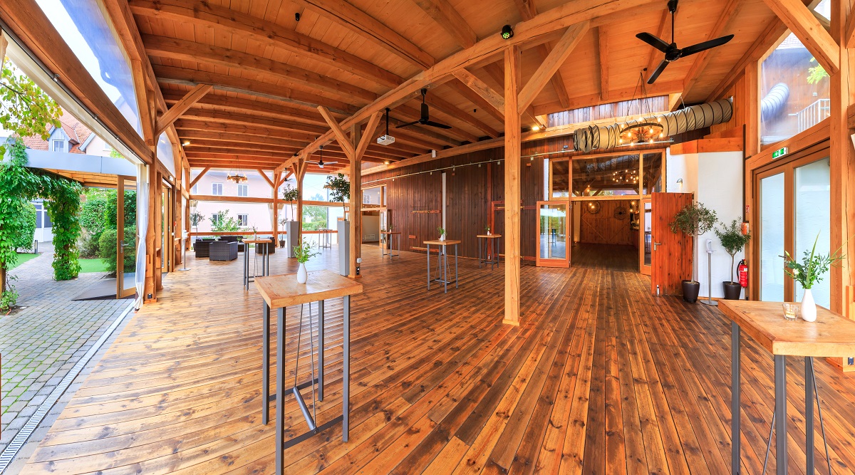 Bei uns tagen und feiern Sie wetterunabhängig - das großzügige Design des Hauses bietet den richtigen Rahmen für Ihre Veranstaltung im Sommer oder im Winter, bei Sonne oder bei Regen. Sowohl unsere modern-rustikale Event-Scheune als auch unser eleganter Bankettsaal oder unsere lichtdurchfluteten Tagungsräume bieten immer den passenden Platz für eine unvergessliche Veranstaltung.