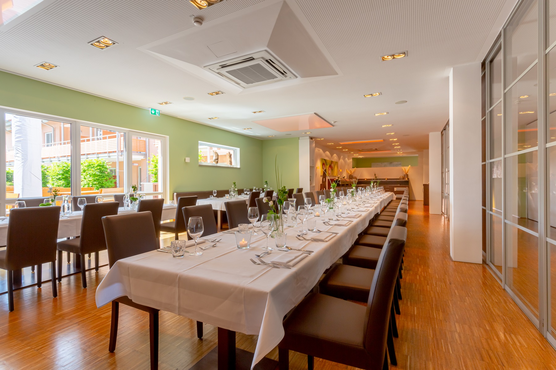 Die Natur, Weitläufigkeit und Ruhe der direkten Umgebung stellen einen wohltuenden Kontrast zur Großstadthektik dar. Mit dieser idyllischen Lage ist das Hotel der ideale Ort für Familienfeiern, Firmen-Events, Seminare, Teambuildings und Produktpräsentationen.