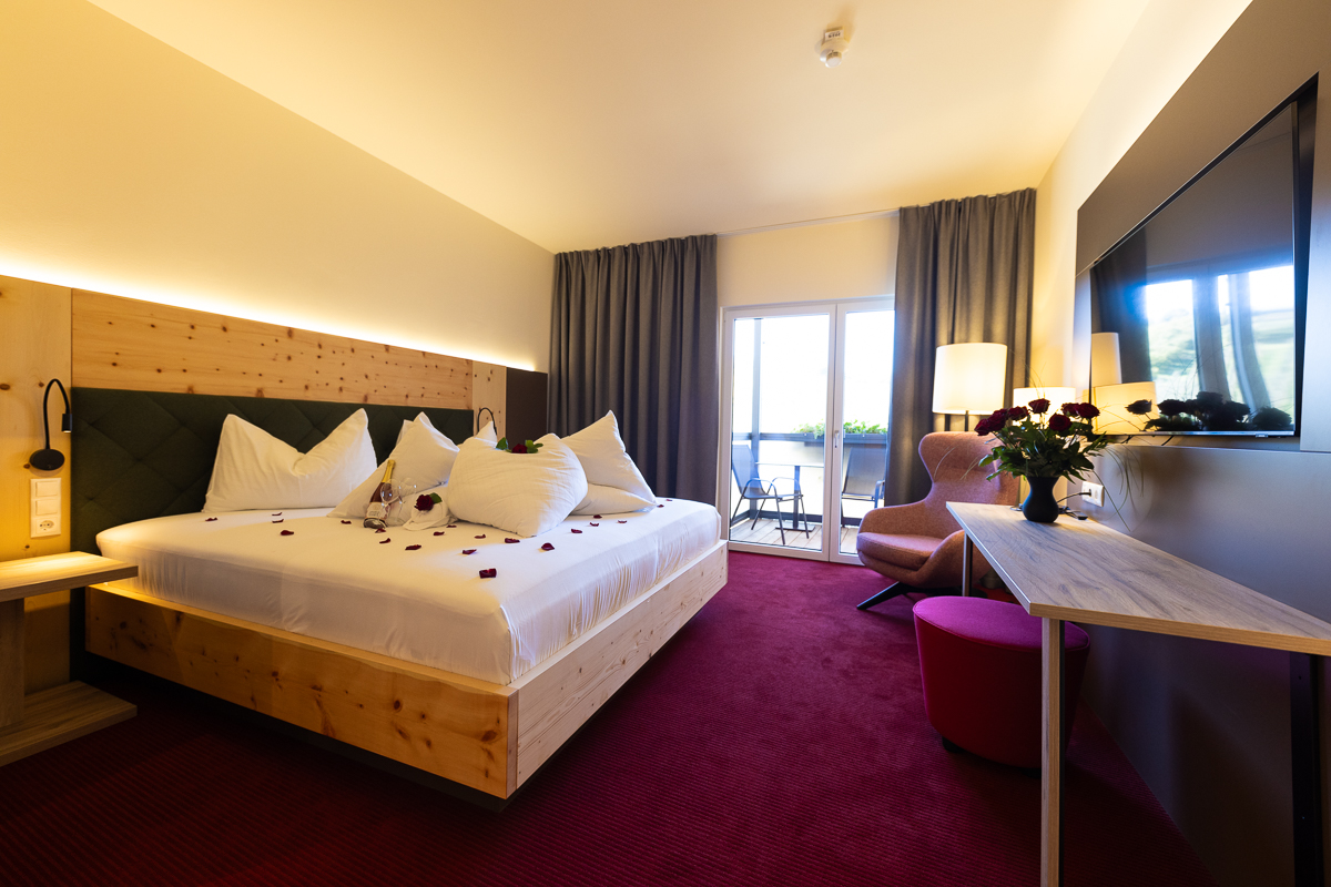 Wo die Sonne die Landschaft küsst und die Menschen besonders herzlich sind, erwartet Sie die unberührte Natur mit Genuss und Erholung pur. Urlaub im Grünen mit nachhaltiger Bauweise, XXL-Genusszimmer und Wellnessoase mit Saunaparadies, beheizter Außen- und InnenPool ca. 34 Grad mit Massagedüsen sowie unser Natursee lassen das Genießerherz höher schlagen.