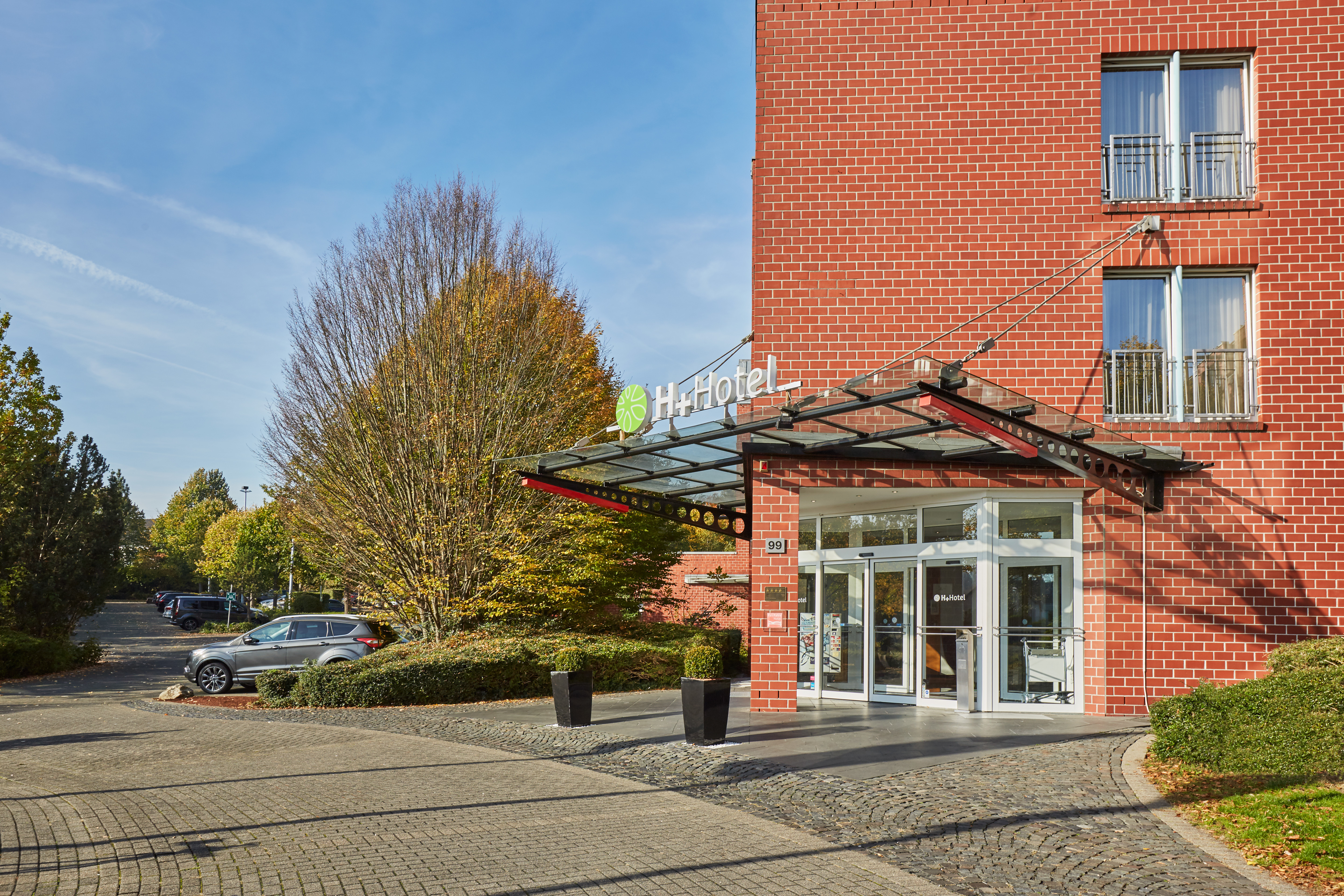 Das mit 4 Sternen ausgezeichnete H+ Hotel Köln Hürth überzeugt durch seine ruhige Lage einerseits und die gute Anbindung an Köln andererseits. Das direkt gegenüber befindliche Einkaufszentrum Hürth-Park und der nahe Wald-Seen-Bereich Theresia sind eine perfekte Ergänzung. Das barrierefrei zugängliche Hotel verfügt über 150 teilweise kostenfreie Parkplätze und bietet in der Messezeit einen kostenfreien Shuttle zum örtlichen Bahnhof an. Komfortable Zimmer, eine exzellente Verpflegung, ein Wellnessbereich und Tagungsmöglichkeiten erfüllen alle Wünsche.