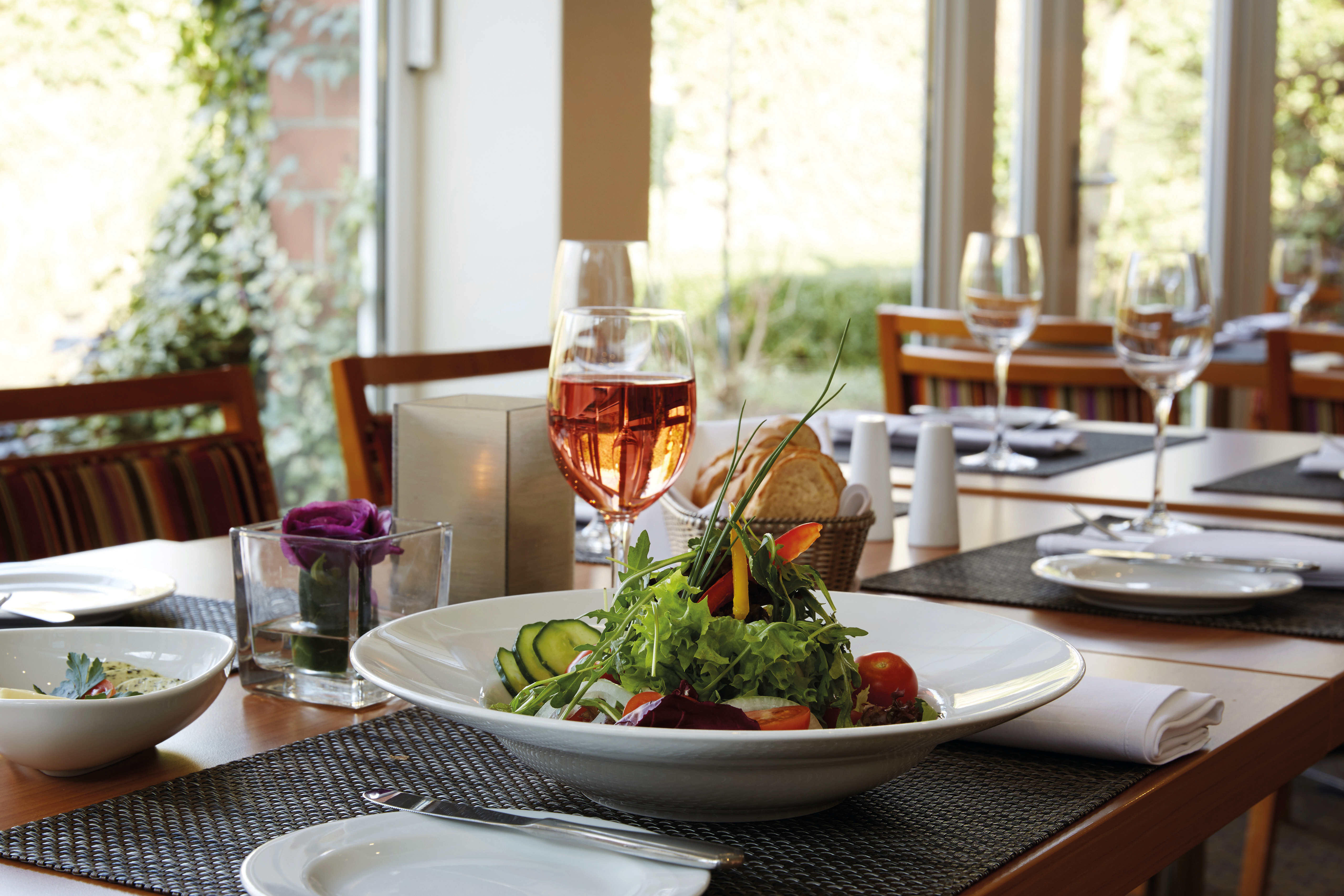 Das Frühstück am Morgen ist als „wichtigste Mahlzeit des Tages“ bereits im Übernachtungspreis enthalten. Mittags und abends erhalten Sie im Restaurant regionale und internationale Gerichte von der Karte. Eine Erfrischung, einen Drink oder einen Espresso bekommen Sie selbstverständlich an der Bar.