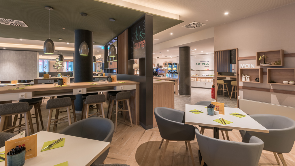 Kostenfreies W-LAN ist im gesamten Hotel verfügbar. Öffentliche Bereiche wie Restaurant, Bar, Rezeption gehen fließend ineinander über.