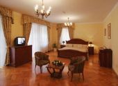 Luxuriöse Zimmer im historischen Stil. Das Hotelrestaurant in den ursprünglichen Raum des Baus mit den gewölbten und den balkenen Decken eingebaut. Wintergarten. Der Tagungsraum mit einer Kapazität von 62 Plätzen eignet sich für Schulungen, Tagungen, Präsentationen.