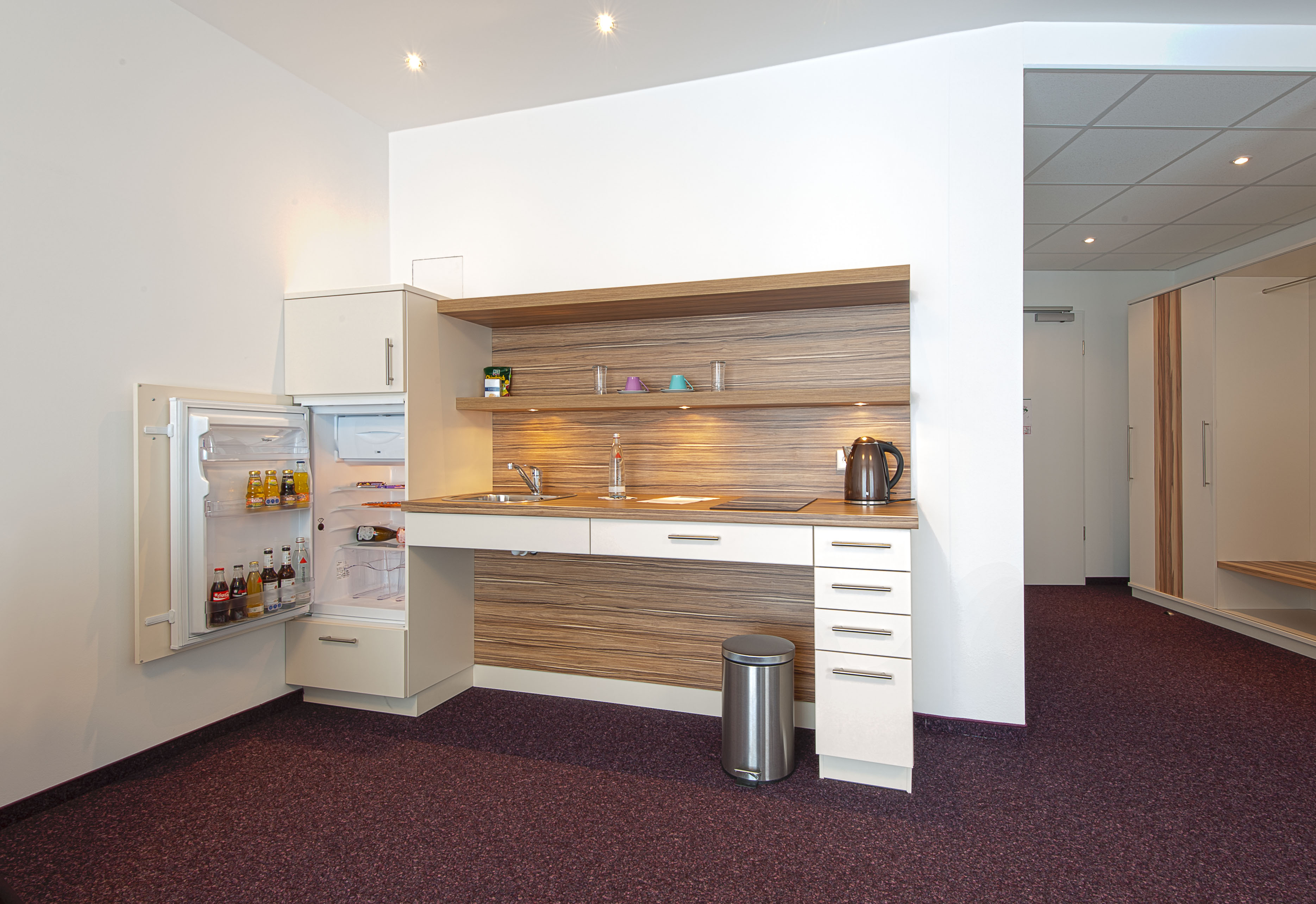 Absolut einmalig im schönen Landkreis Fürstenfeldbruck – das barrierefreie Hotelkonzept! Auf hellen, sonnenlichtdurchfluteten 40 m 2 wohnen Sie bei uns in modernen und kom plett barrierefreien Zimmern. Sie sind alle mit einer Kitchenette ausgestattet, die Ihnen die Möglichkeit zur Selbstversorgung während Ihres Aufenthaltes bietet. Auch unsere geräumigen Bäder sind nach den neuesten Richtlinien barrierefrei gestaltet. Außerdem bieten wir Ihnen noch das doppelte Doppelzimmer: Lichtdurchflutet und mit Blick ins Grüne können hier bis zu 4 Personen nächtigen, ohne dass es dabei eng wird, denn in diesen Zimmern gibt es ein weiteres separates Schlafzimmer mit Doppelbett und Schrank. Unsere doppelten Doppelzimmer liegen mit knapp 50 m 2 deutlich über dem Durchschnitt eines Hotelzimmers und bieten somit ausreichend Platz für Reisen mit der Familie oder dem Pflegepersonal.