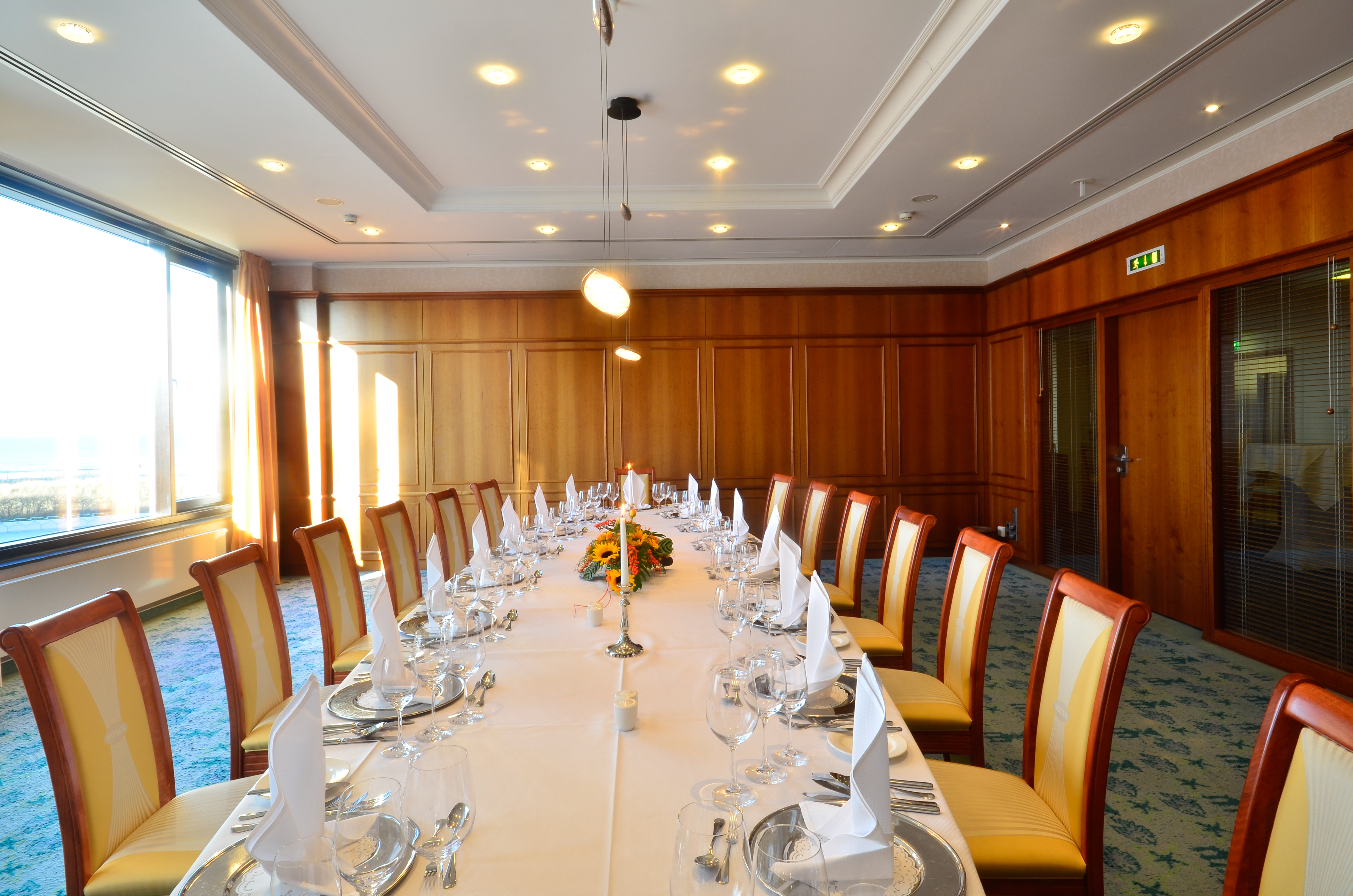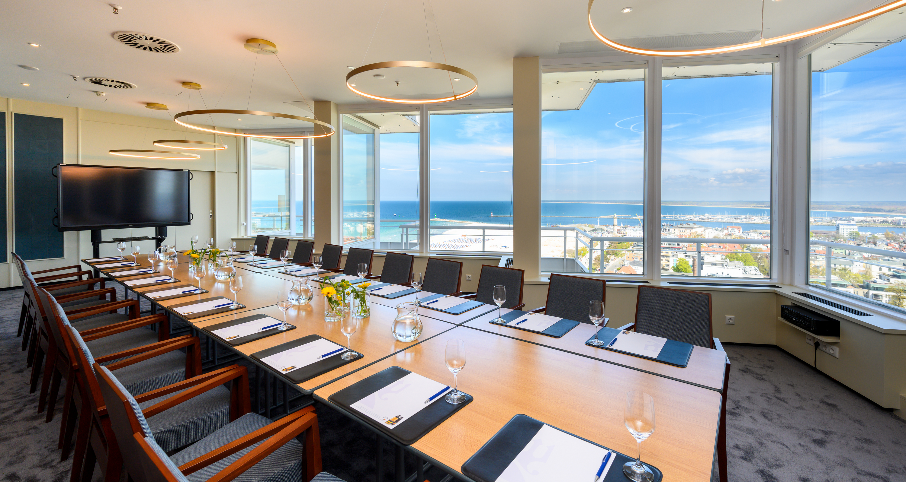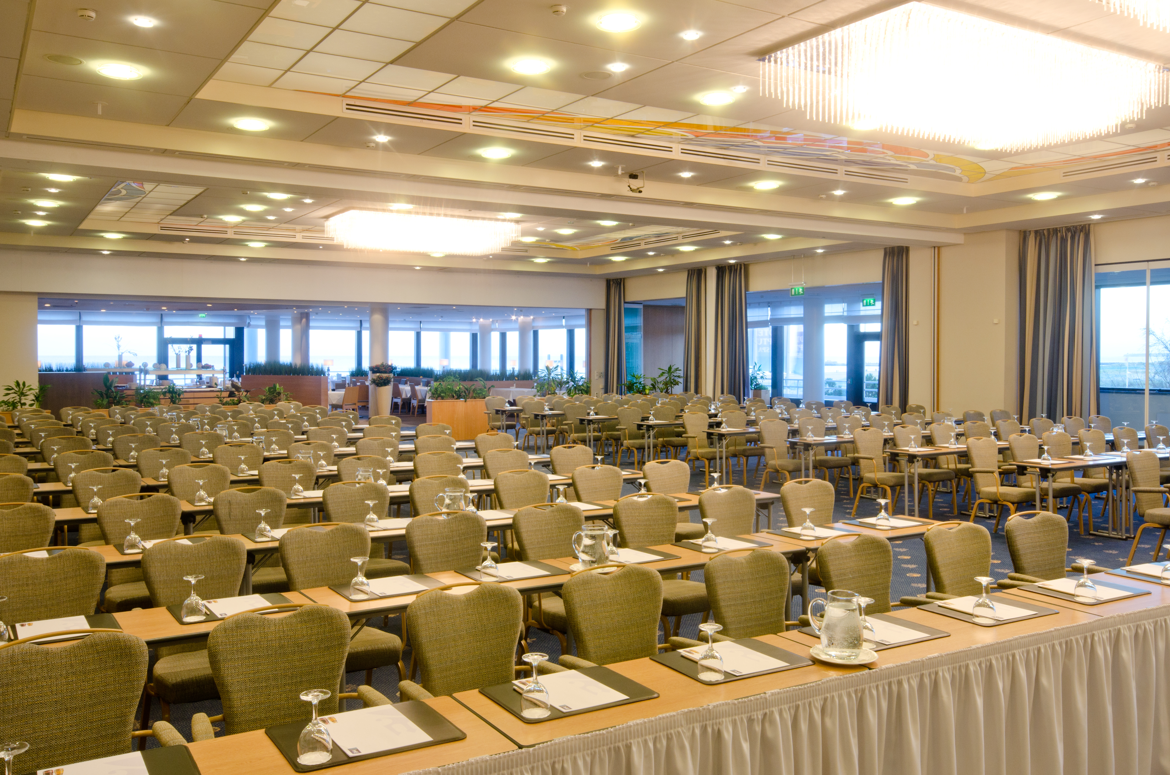 Die Tagungs- und Konferenzetage mit Meerblick bietet in zehn Salons und Sälen Platz für bis zu 600 Personen. Modernste Licht-, Ton- und Präsentationstechnik und eine professionelle Bürokommunikation stehen genauso zur Verfügugung wie ein perfekter Service. Durch individuelle Beratung ist sichergestellt, dass Technik und Betreuung Ihren Erfolg erstklassig unterstützen.