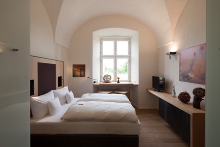 Mit Blick auf die umliegenden Wälder und Hügel genießt das Hotel Kloster Holzen eine attraktive Lage, auf einer Anhöhe in Allmannshofen, zwischen Augsburg und Donauwörth gelegen. Moderne Hotellerie und Gastronomie in historischem Ambiente und Umfeld, bietet Ihnen Ruhe, Balance für Körper, Geist und Seele, endlosweite Grün- und Gartenanlagen sowie kulinarische Genüsse. Hochwertig ausgestattete Seminar- und Tagungsräumlichkeiten, aktuellste Technik und 63 stilvoll eingerichtete Zimmer stehen Ihnen zur Verfügung. In den Zimmern wurde größtmöglicher Wert auf die Erhaltung der bestehenden Bausubstanz gelegt. Historisches verbindet sich mit Moderne, natürliche Materialien mit zeitgemässem Design.