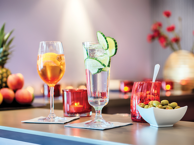 Networkings oder Welcome-Cocktails finden entweder im Barbereich mit Lounge oder auf der Terrasse statt. In Kombination mit dem Restaurant bieten diese 3 zusammenhängenden Bereiche eine großzügige Eventfläche.