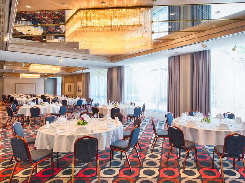 Die 9 Tagungsräume für bis zu 360 Personen verfügen alle über Klimaanlage sowie Tageslicht und sind zum Teil flexibel kombinierbar. Der Saal im Erdgeschoss ist u.a. mit dem PKW befahrbar und aufgrund seiner Größe und hellen Ausstattung sowohl für Galadinners als auch große Konferenzen geeignet. Die Meeting-Etage im ersten Stock hält für Tagungen mit Gruppenarbeit, neben großzügigen Seminarräumen, auch verschiedene Break-Out Räume bereit.