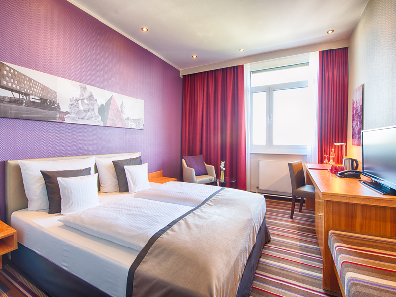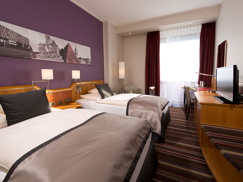 Die 147 modern ausgestatteten und klimatisierten Zimmer sowie Suiten bieten hervorragende Unterbringung bei Veranstaltungen im Karlsruher Kongresszentrum, das nur wenige Gehminuten entfernt ist. Die Suiten mit separatem Wohn- und Schlafbereich können auch für kleine Besprechungen genutzt werden.