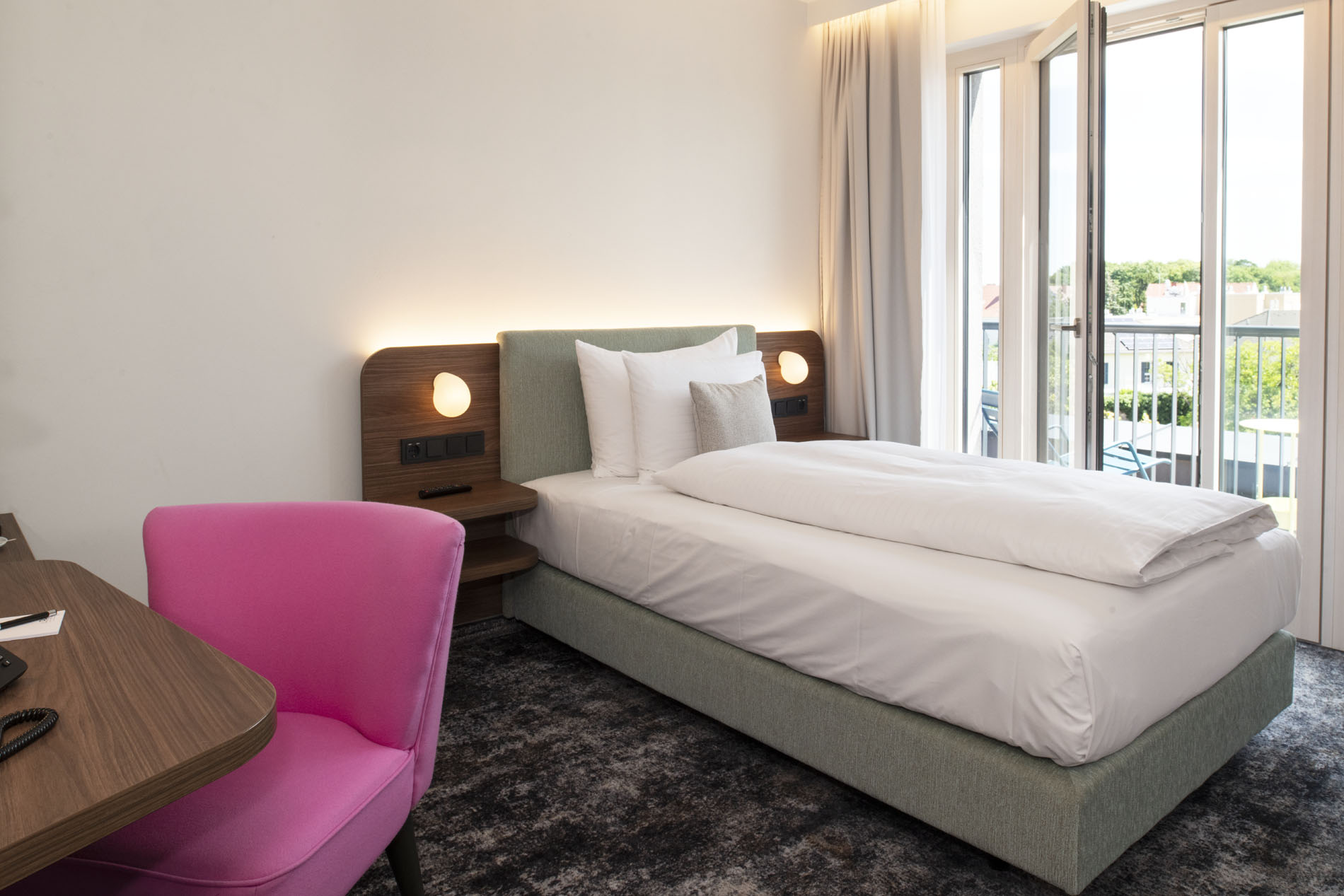 Als Business-Hotel mit 44 modernen Zimmern schaffen wir zudem Raum für Arbeit und Kreativität. Nach einem produktiven Tag können Sie in unserer Fit Lounge trainieren oder ein vielfältiges Frühstück mit veganen Optionen genießen, während kostenlose Parkplätze direkt am Hotelareal für zusätzlichen Komfort sorgen.