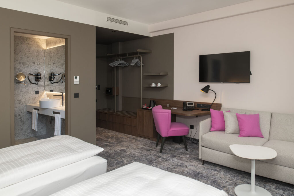 Entdecken Sie das einzigartige Flair des Hotels leParc in Wiener Neustadt, das eine perfekte Balance zwischen modernem Komfort und entspannter Eleganz bietet. Mit einer Vielzahl erstklassiger Annehmlichkeiten und gehobener Zimmer- kategorien lädt unser Hotel dazu ein, sich rundum wohlzufühlen – sei es in modernen Zimmern mit zusätzlichen Sofabetten, auf großzügigen Terrassen oder in unserer entspannenden Sauna.
