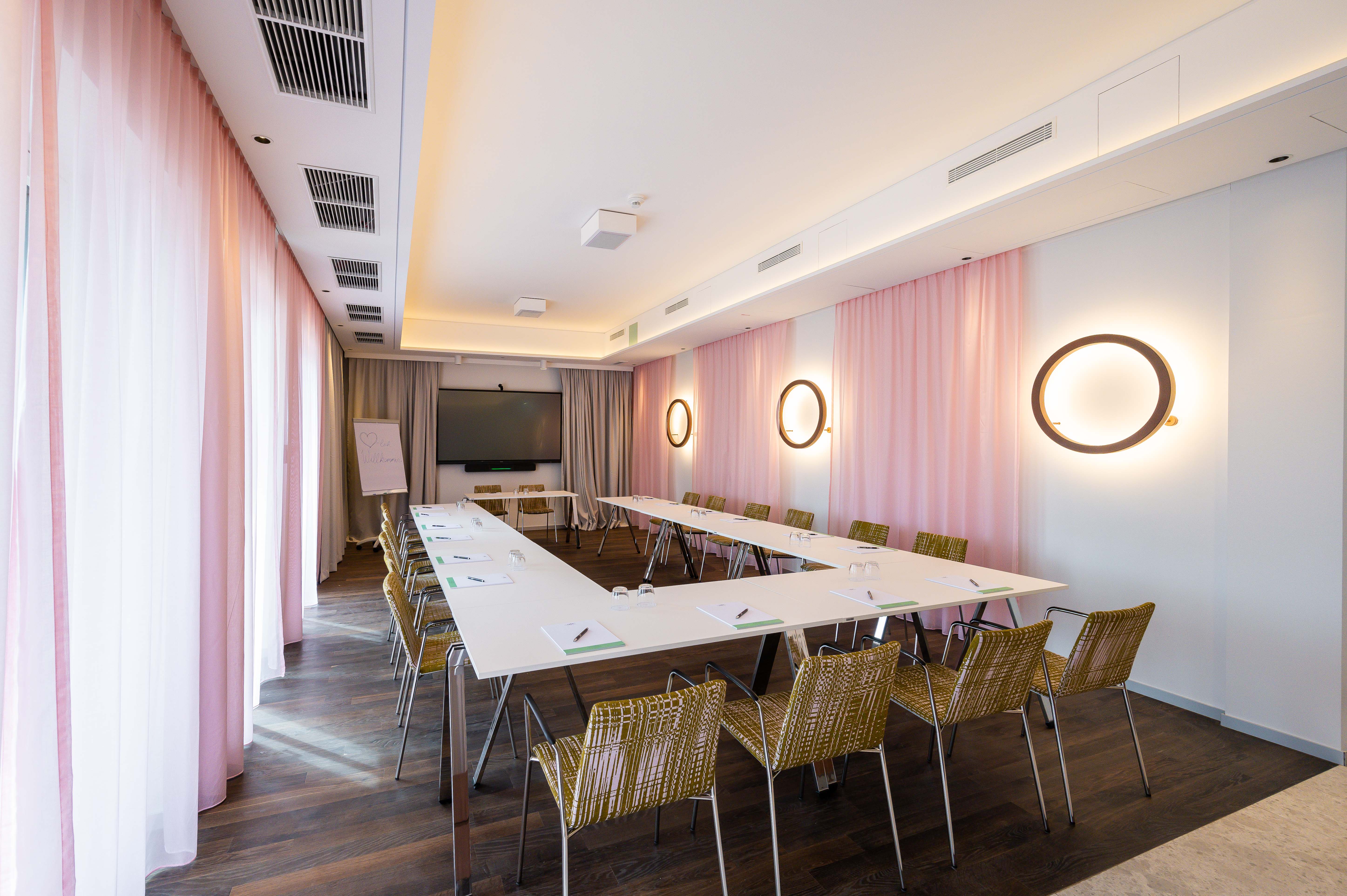 Planen Sie eine private Veranstaltung, ein geschäftliches Meeting oder ein exklusives Seminar? Unser Konferenzraum bietet Platz für bis zu 25 Personen und ist mit Highspeed-WLAN, Tageslicht sowie modernster Konferenztechnik, einschließlich großem Touchscreen-Monitor und Click & Share-Funktion, ausgestattet. Die angeschlossene private Terrasse bietet zudem die perfekte Breakout-Möglichkeit zur kreativen und gruppendynamischen Gestaltung Ihres Seminars.