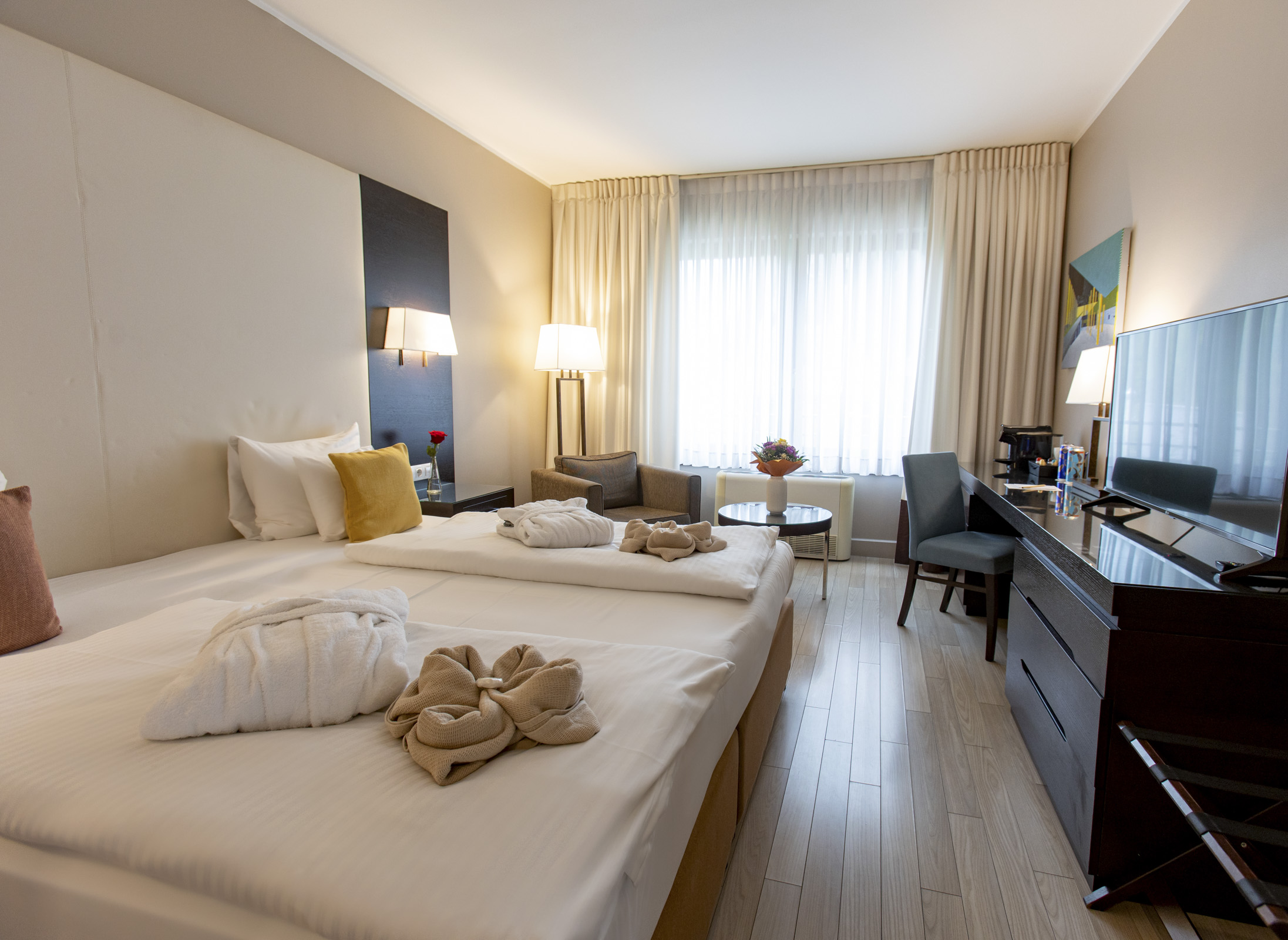 Das Hotel verfügt über 107 komfortabel ausgestattete Zimmer mit Klimaanlage, Wireless LAN, Zimmersafe und überzeugt durch ein gemütliches und modernes Design. Das Restaurant serviert sowohl regionale als auch internationale Gerichte. Im Fitnessraum stehen Sportgeräte zur Verfügung und danach kann im Spabereich mit Innenpool und Sauna entspannt werden.