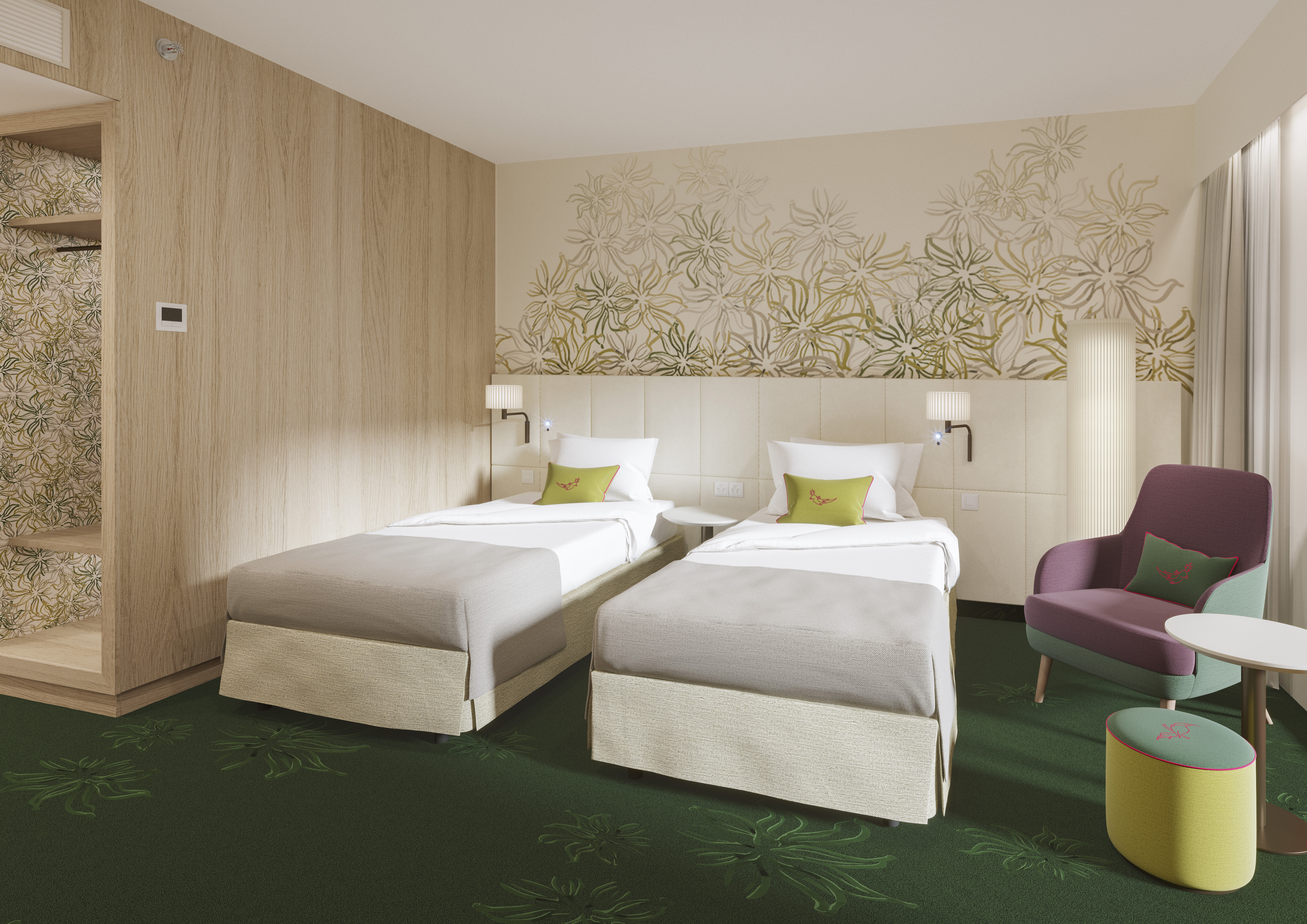 Das 4-Sterne-Businesshotel verfügt über 262 individuell designte Zimmer, davon 5 Junior Suiten, 2 rollstuhlgerechte Zimmer und 6 barrierefreie Zimmer. Alle Zimmer sind ausgestattet mit Klimaanlage, schallisolierten Fenstern, Telefon, Flat Screen TV, Zimmersafe sowie Kaffee- und Teezubereitungsmöglichkeit. Das WLAN ist in allen Zimmern kostenfrei.
