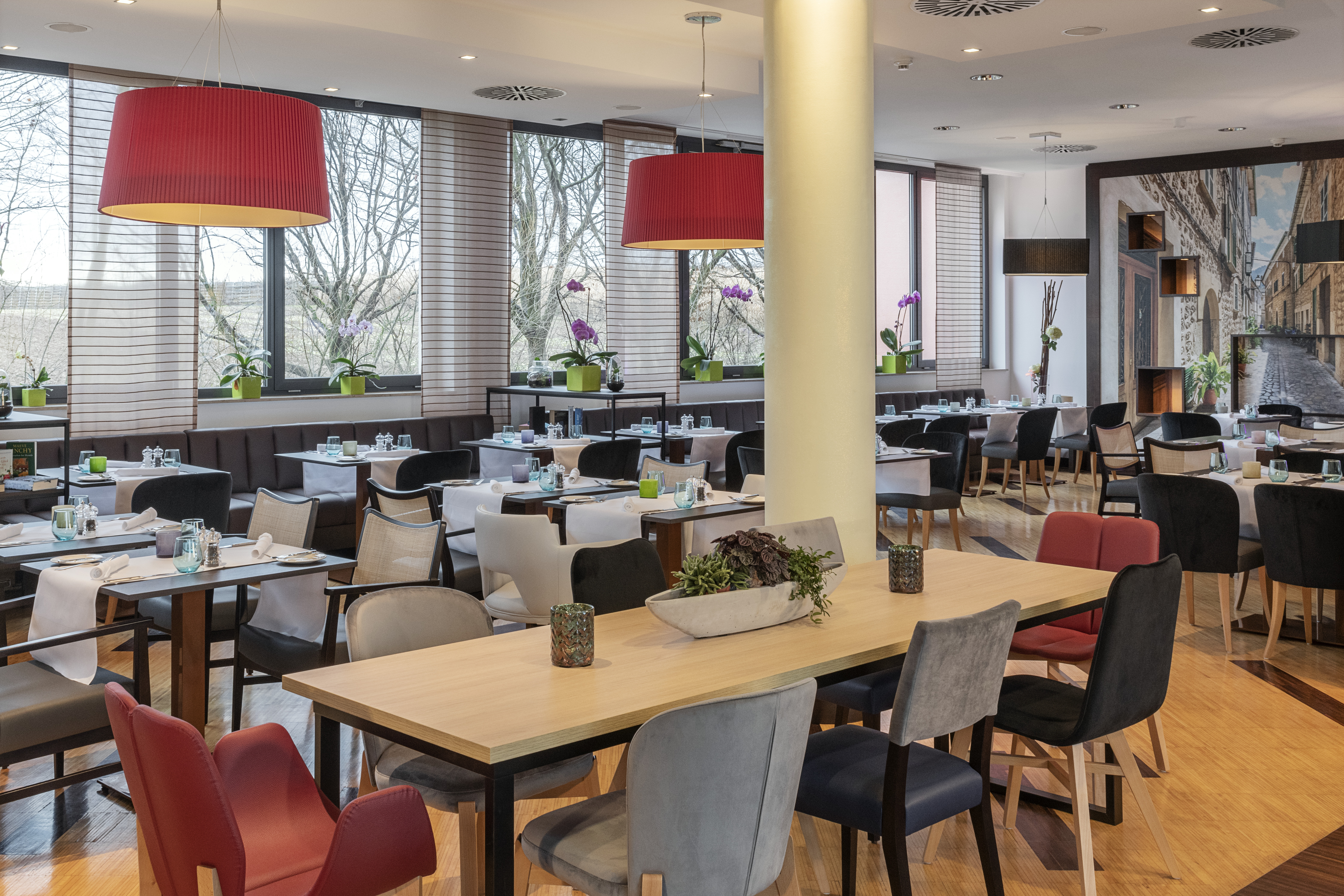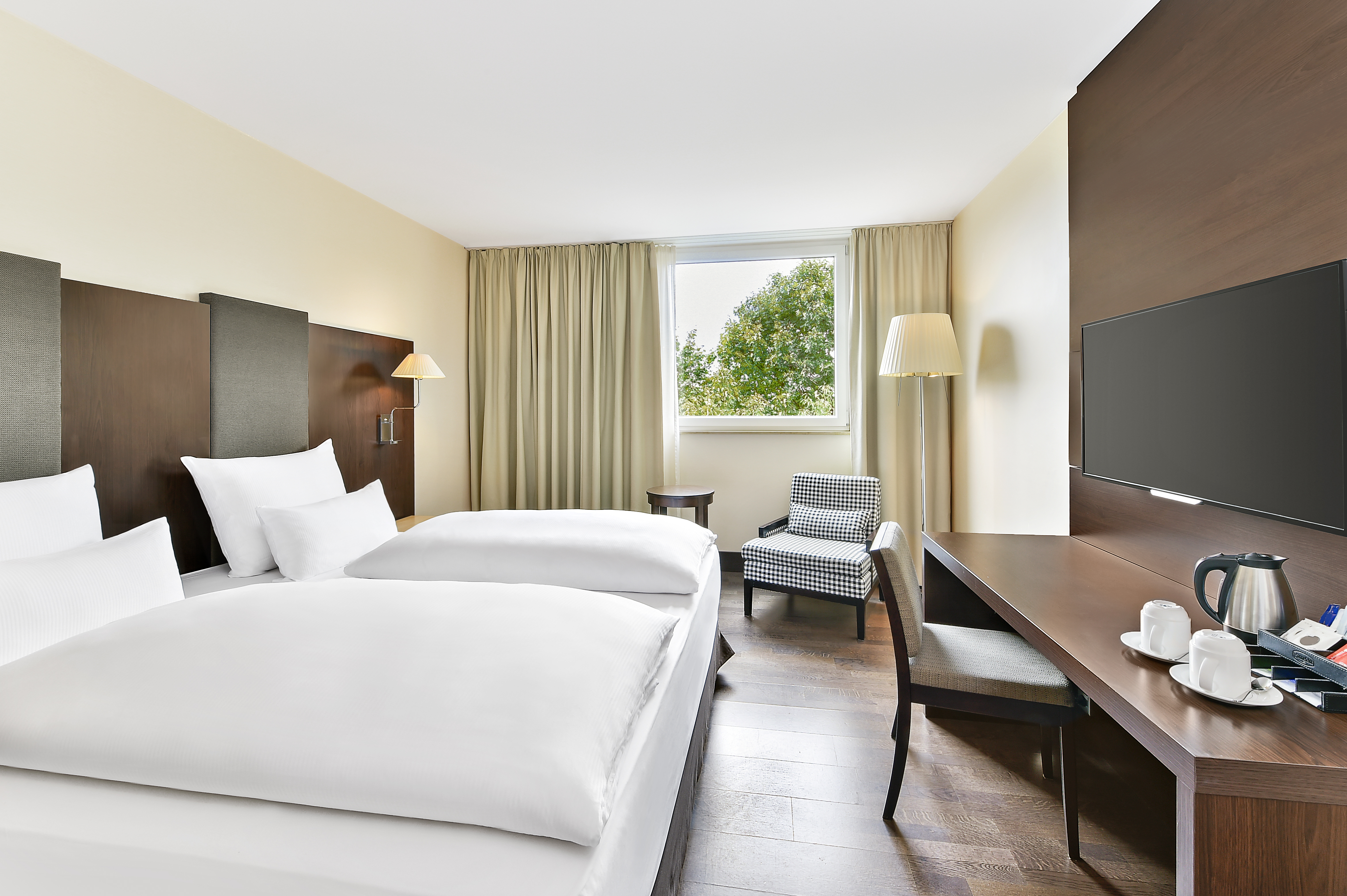 Das Hotel verfügt über 208 Standard Zimmer, die sich durch ihr geräumiges, modernes Design und ihre stimmungsvolle Einrichtung in warmen Erdtönen auszeichnen. Neben der heimeligen Atmosphäre sorgen die Betten mit einer 32 cm dicken Matratze und einer Kissenauswahl für einen garantiert erholsamen Schlaf. Und falls Sie noch ein paar geschäftliche Dinge erledigen müssen, ist das dank Schreibtisch und WLAN gar kein Problem. Außerdem bieten wir barrierefreie Zimmer sowie Zimmer mit Verbindungstür als ideale Option für Familien an.