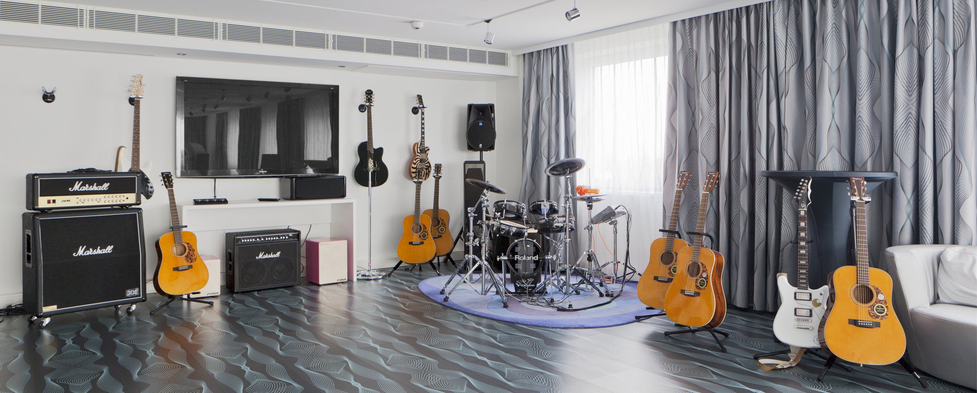 Unsere nhow Suite mit eigener Terrasse und Panoramablick eignet sich perfekt für private Empfänge oder Feiern. Als Gesamtkunstwerk ist das nhow Berlin ein modernes Architektur- und Design-Highlight der Hauptstadt. Geschäftsreisende Kosmopoliten, internationale Jetsetter und angesagte Bands treffen hier aufeinander. Was alle vereint, ist die Liebe zur Musik. Ein hauseigener Musikmanager, ein exklusiver Gitarren-Roomservice und ein High-End-Tonstudio mit Panoramablick über Berlin schreien hinaus, was woanders höchstens geflüstert wird: Let‘s rock it!