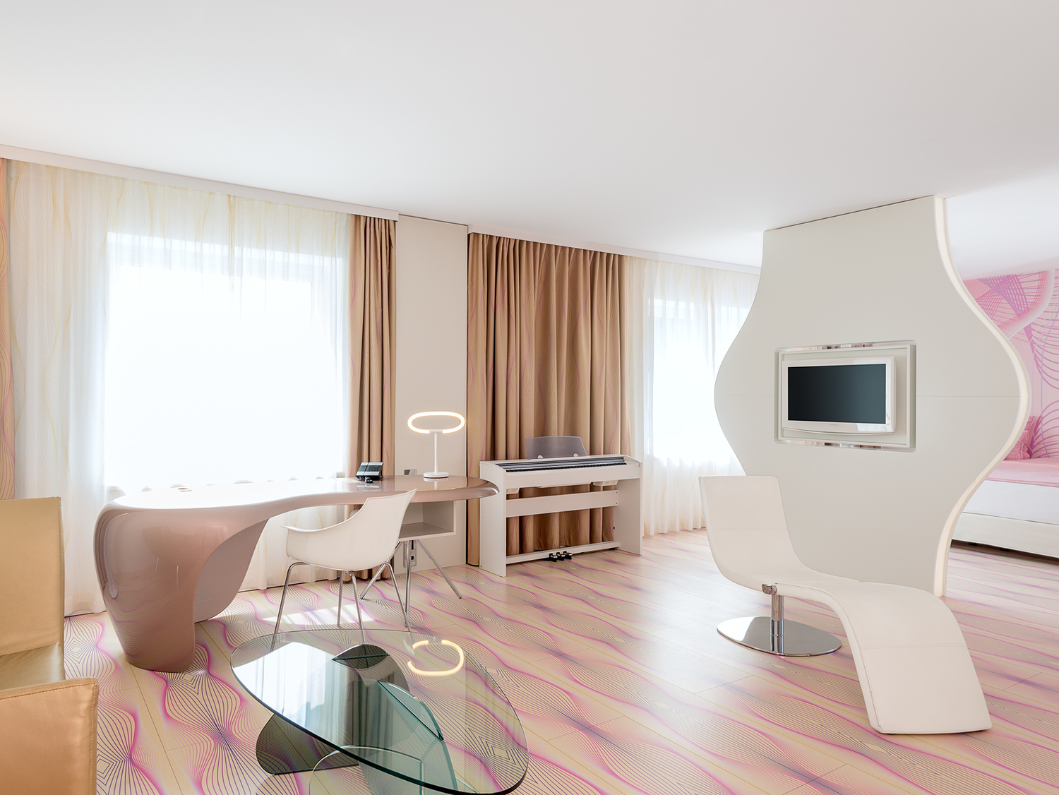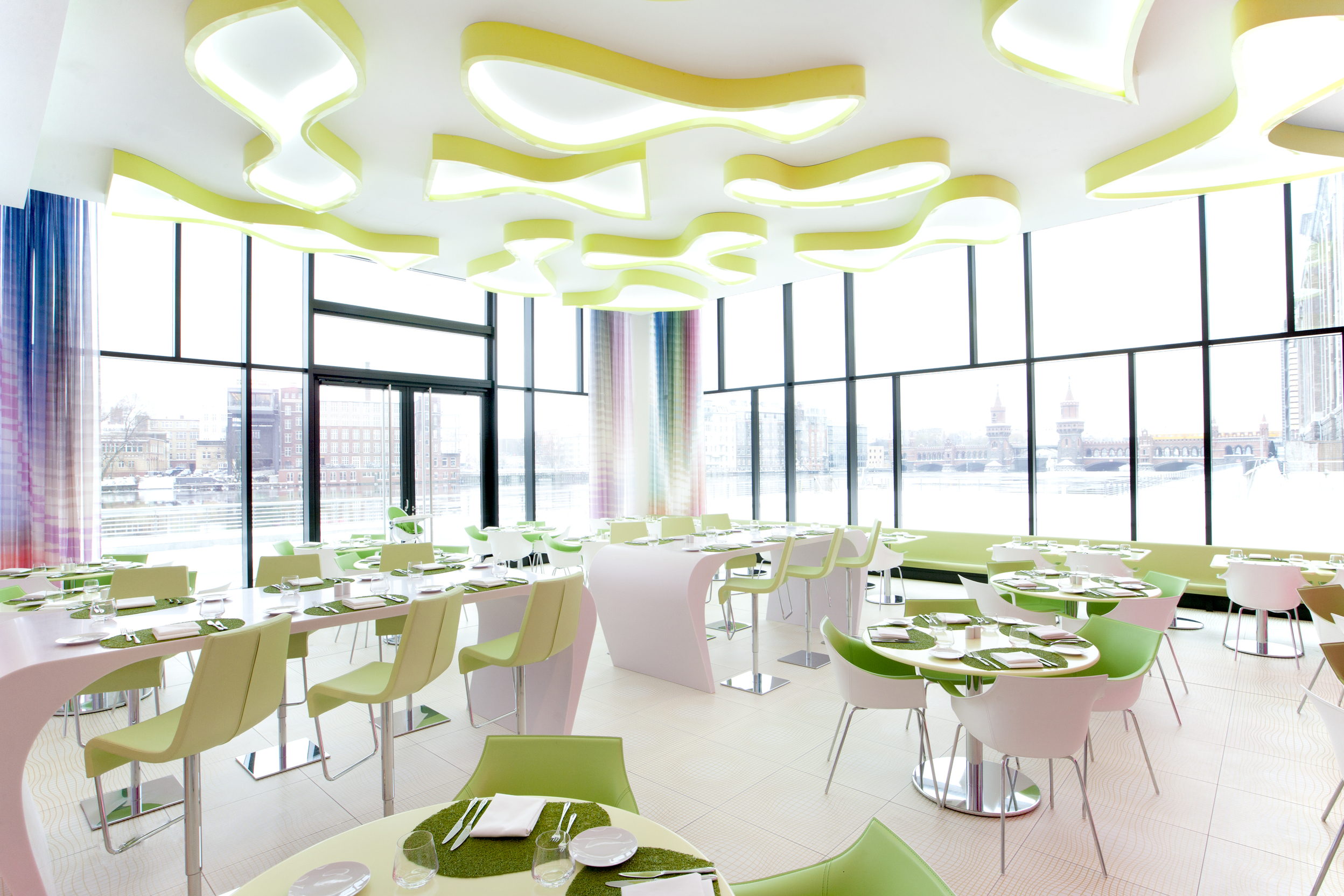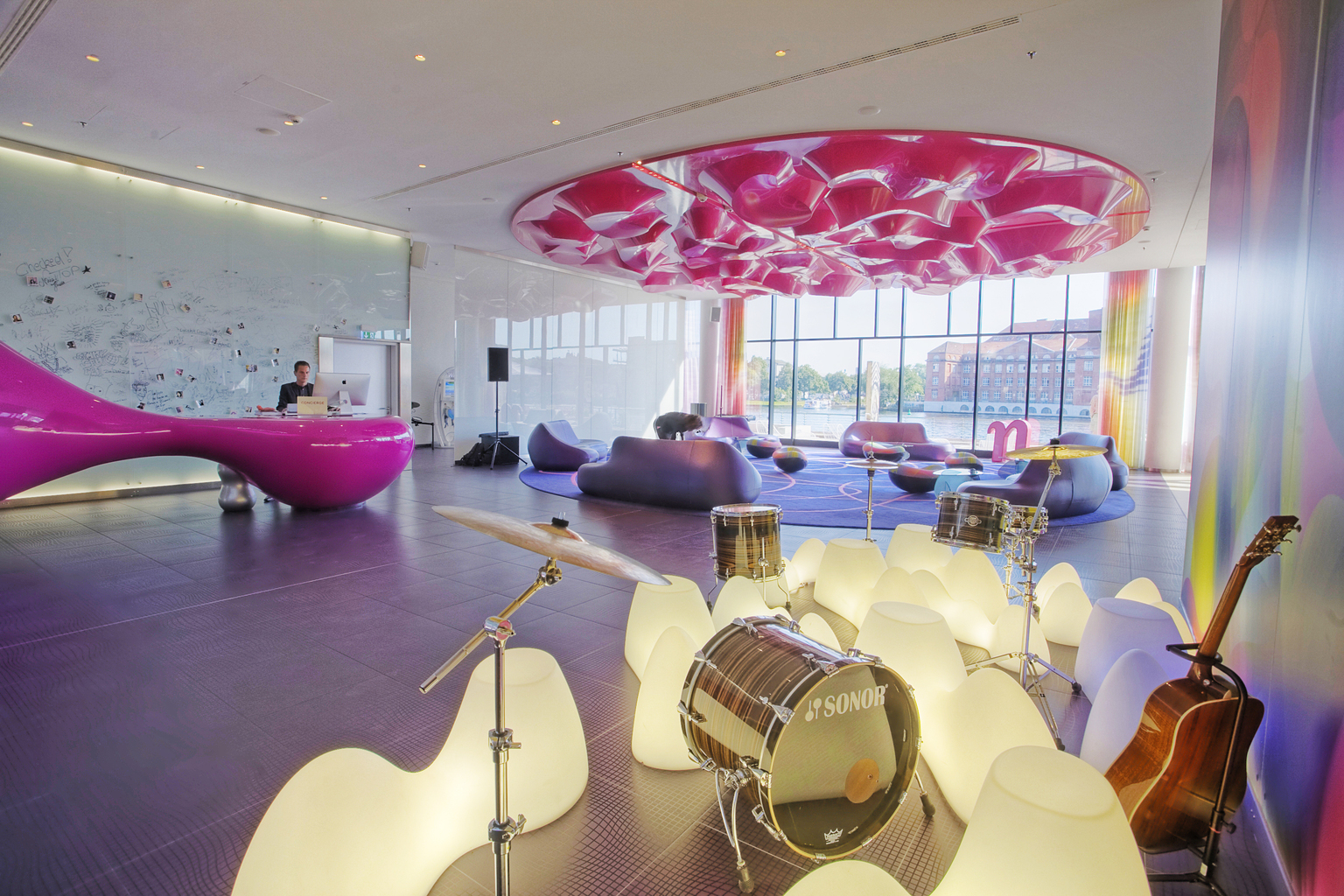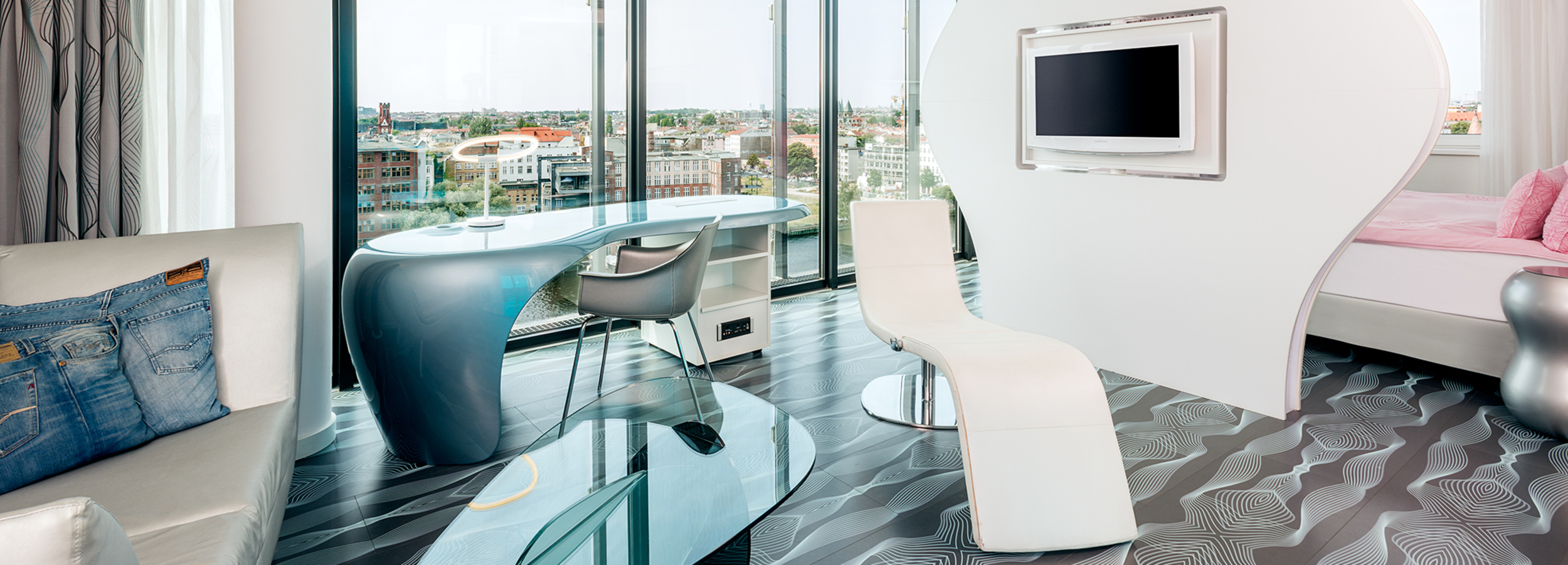 Das nhow Berlin ist Europas erstes Musikhotel, liegt direkt am Ufer der Spree und mitten im Epizentrum der Berliner Musik-, Fashion- und Kreativszene. Niemand Geringeres als der New Yorker Designer Karim Rashid hat das gesamte Interieur des nhow Berlin gestaltet. Die 304 Zimmer des Hotels wurden in einem futuristischen Look mit pinken Farbaspekten gestaltet. Sie verfügen über iPod-Anschlüsse und Minibar inklusive Nagellack. Als kleines Extra haben wir für sie auch den 24-Stunden Gitarren- und Keyboard-Roomservice.