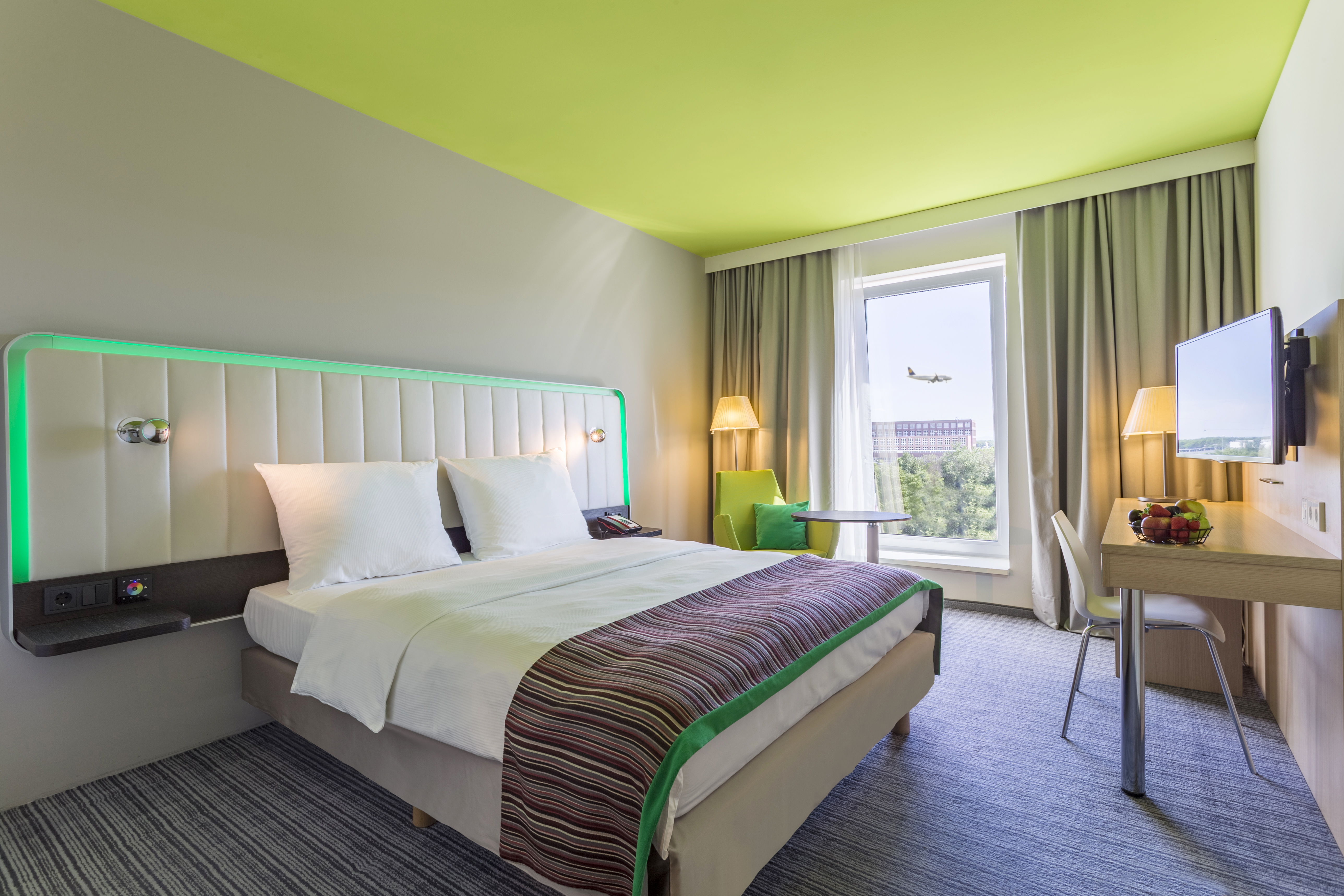 Direkt in der Nähe vom Terminal bietet das Park Inn by Radisson Frankfurt Airport eine farbenfrohe Alternative zu den bestehenden Übernachtungsmöglichkeiten. Das Hotel bietet 209 moderne Gästezimmer im frischen Park Inn Design inklusive 22 Zimmern der business-friendly Kategorie, sowie 2 Junior Suiten. Sämtliche Gästezimmer sind mit individuell regulierbarer Klima-Kontrollanlage, LED-Smart TV und Safe in Notebook-Größe ausgestattet. Der Flughafen Shuttle Bus verkehrt regelmäßig zwischen den Terminals und dem Hotel und auch der Fernbahnhof des Frankfurter Flughafens am Terminal 1 ist schnell erreichbar.