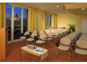 All the rooms are suites in very centre of Budapest. A rich buffet breakfast gives a good start to your day and you can unwind in the evening after a tiring day of business or sightseeing in our newly opened Sky Bar on the top floor, with a city skyline and Basilica panorama. The Hotel provides free wireless internet access in the rooms and in the public areas for Hotel guests. Our wellness area has a fitness room and a sauna. The hotel is located in the beautiful historic centre of the city home to the main sights, cultural areas, shopping streets and the best places for nightlife. Andrássy avenue the main boulevard of Budapest is just 2 minutes away. The most important public transportation hub of Budapest, Deák Ferenc-tér is only one minute away. The Danube, and Vörösmarty-tér main square of Budapest, are just a short walk of five minutes away. Our Madách Imre conference room with a natural light (which opens to the Sky Bar and has a fantastic view of the skyline and the Basilica).