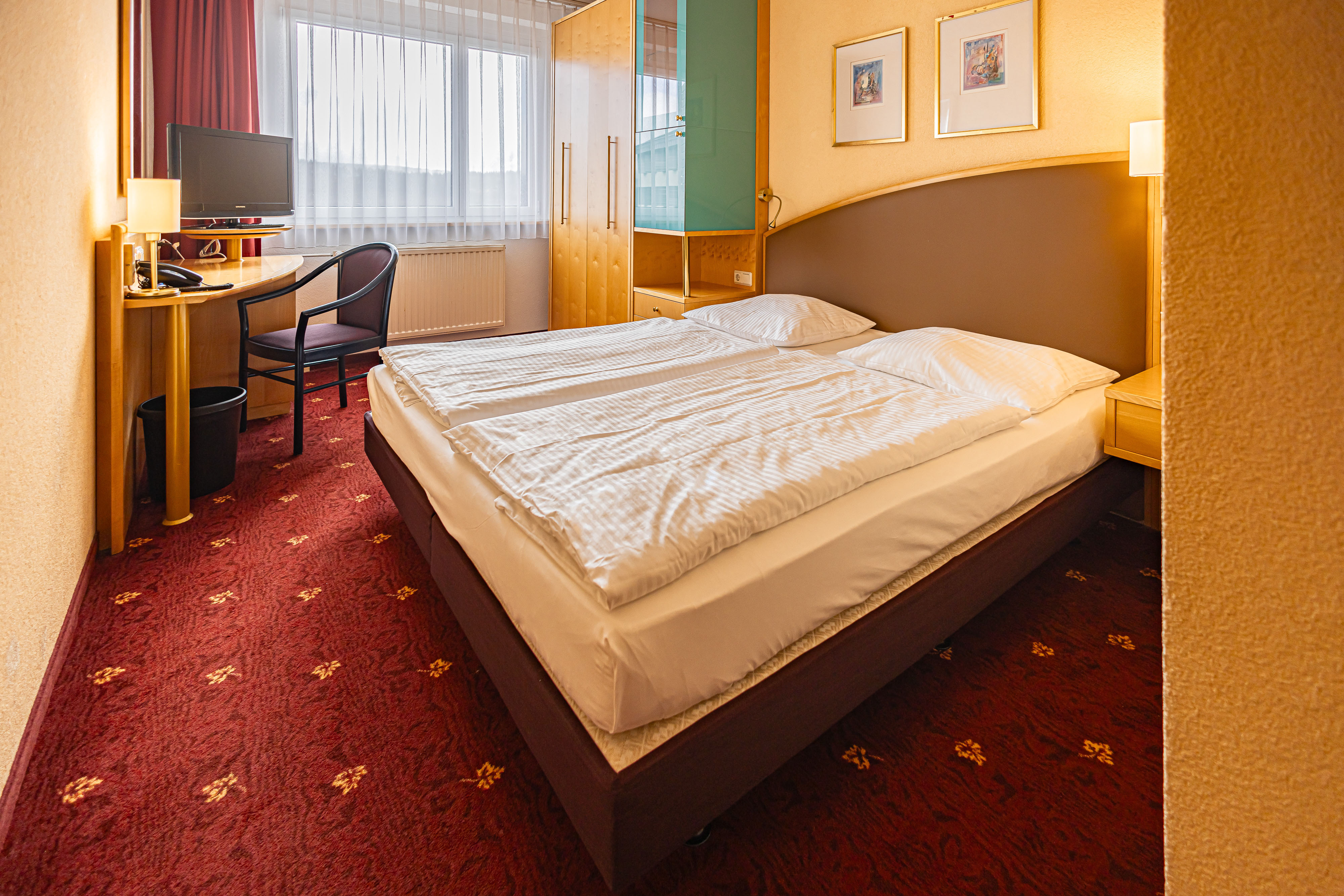 Jedes unserer 290 geräumigen und gut ausgestatteten Zimmer bietet Ihnen einen einzigartigen Ausblick auf den Thüringer Wald, die Stadt Suhl und das Frankenland. Die Berge ringsum laden Sie zu aktiver Erhohlung und Abenteuern ein: zum Wandern, Laufen, Radfahren und natürlich zum nordischen oder alpinen Wintersport.