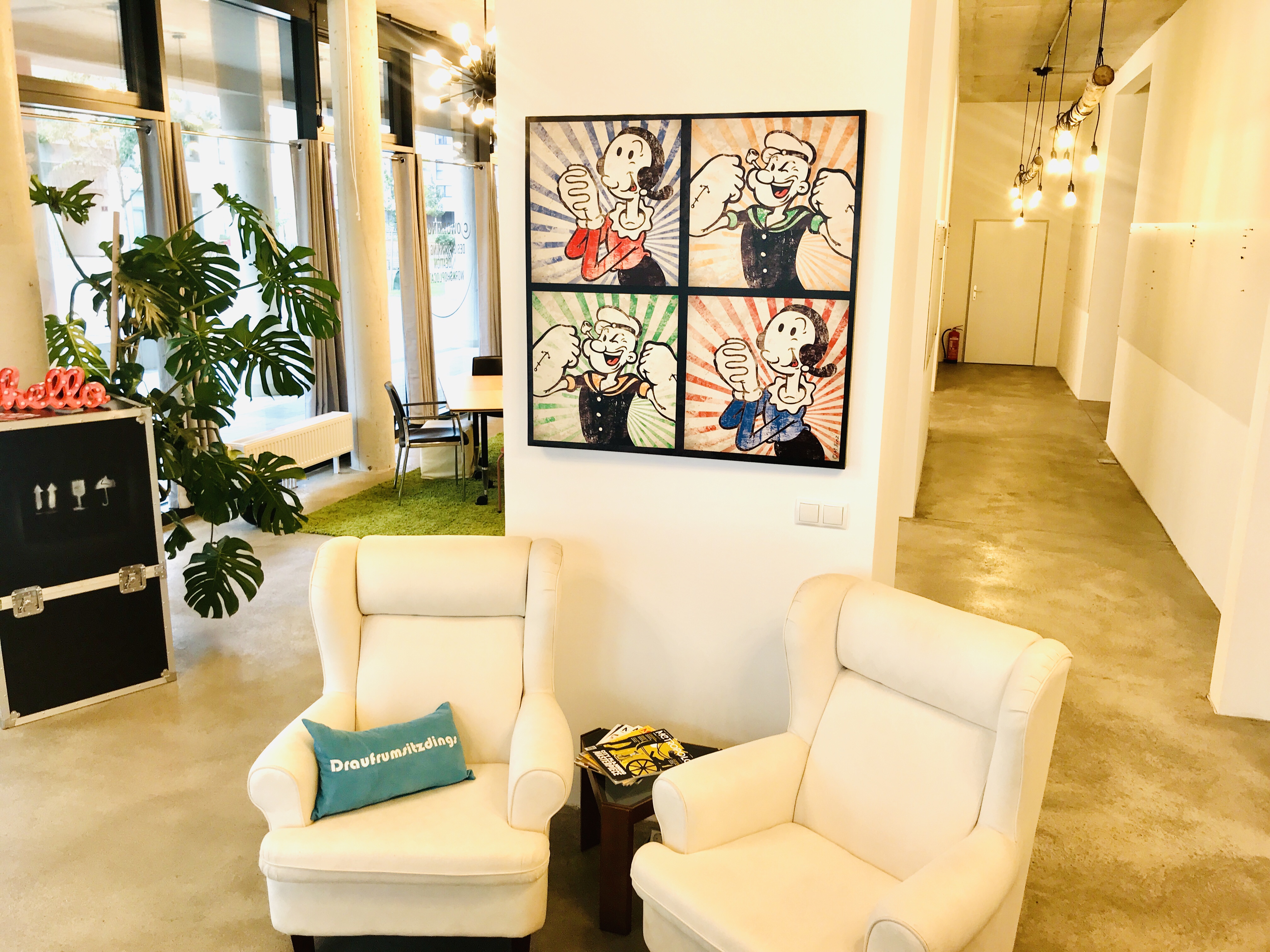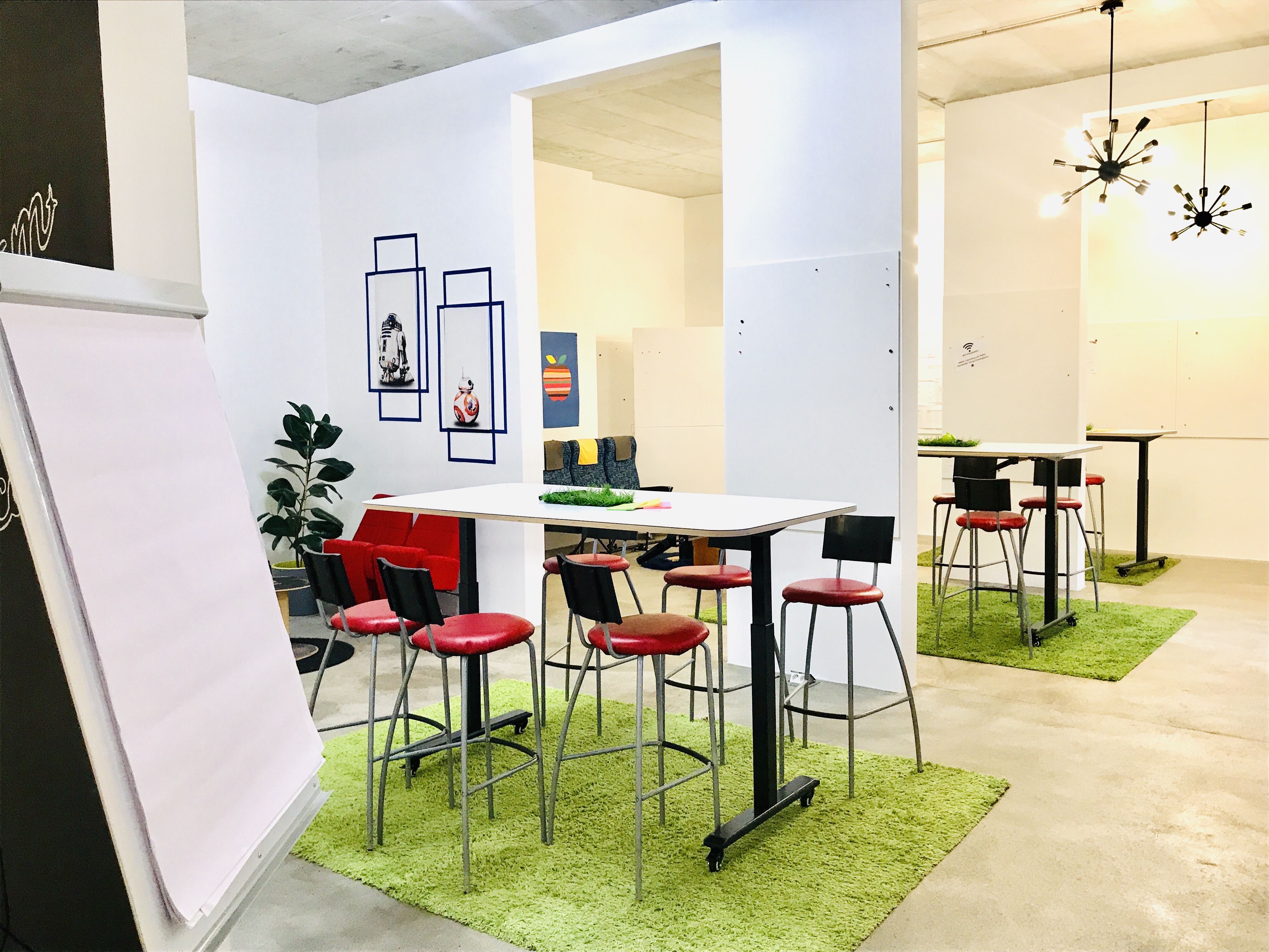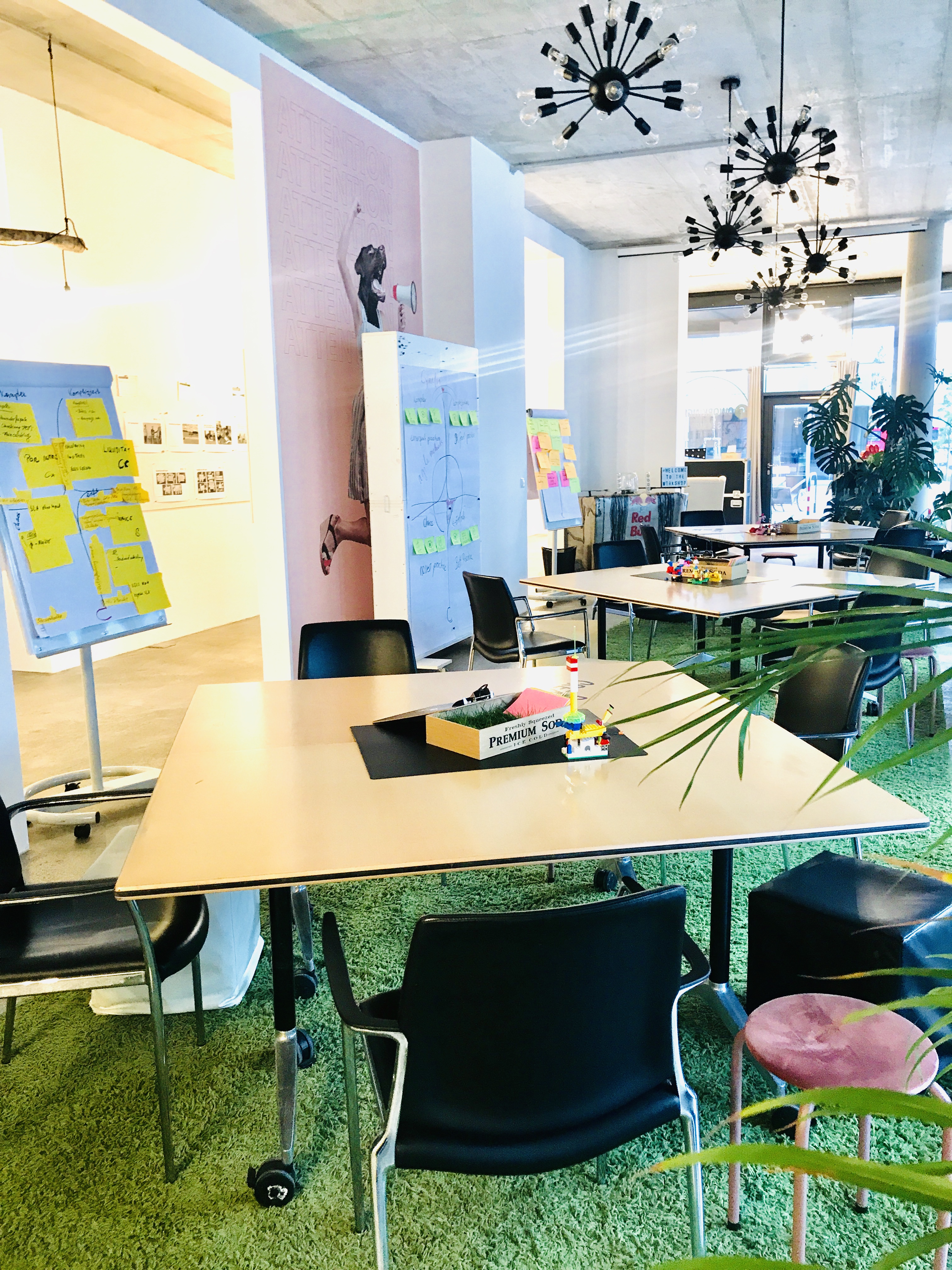 310m², sehr hohe und barrierefreite Workshoplocation mit klassischem Loft Charakter. Helle, sonnendurchflutete Bereiche eröffnen eine besondere Atmosphäre für kreatives, innovatives Arbeiten. Verschiedene Workshopzonen wie Vortragsarena, Breakout -, Relax-, Kreativ-Zonen, die komplett moveable sind und an den Workshop, die Personenanzahl und das Programm angepasst werden können. Urban, verspielt und sehr variabel. Ideal für interaktive Workshops (Ideation, UX, Scrum, Design Thinking, Prototyping, etc.), Seminare, Tagungen und Trainings jeder Art. Integrierter Küchen- bzw. Bar-Bereich zur optimalen Bewirtung der Teilnehmer. Über 50 Meter Vertikalflächen (bsp. Pinnwände, beschreibbare Tische, White Boards, Projekt-Boards, Tafel-Wände, Flip-Charts etc) für kreative Gruppenarbeit. Sämtliche Technik und Moderationsmaterial vor Ort (Beamer, Mikro, Drucker, WLAN, Sound, Marker, Post It´s etc.).