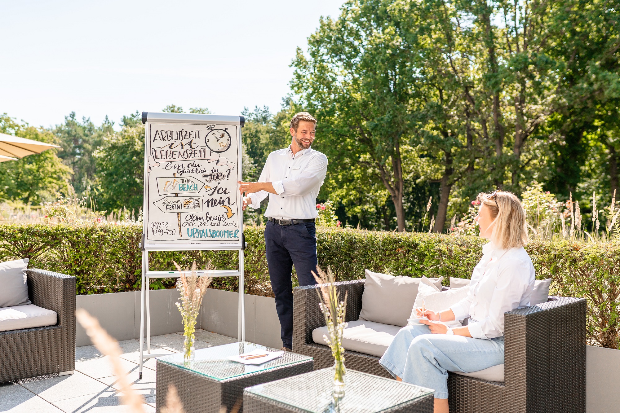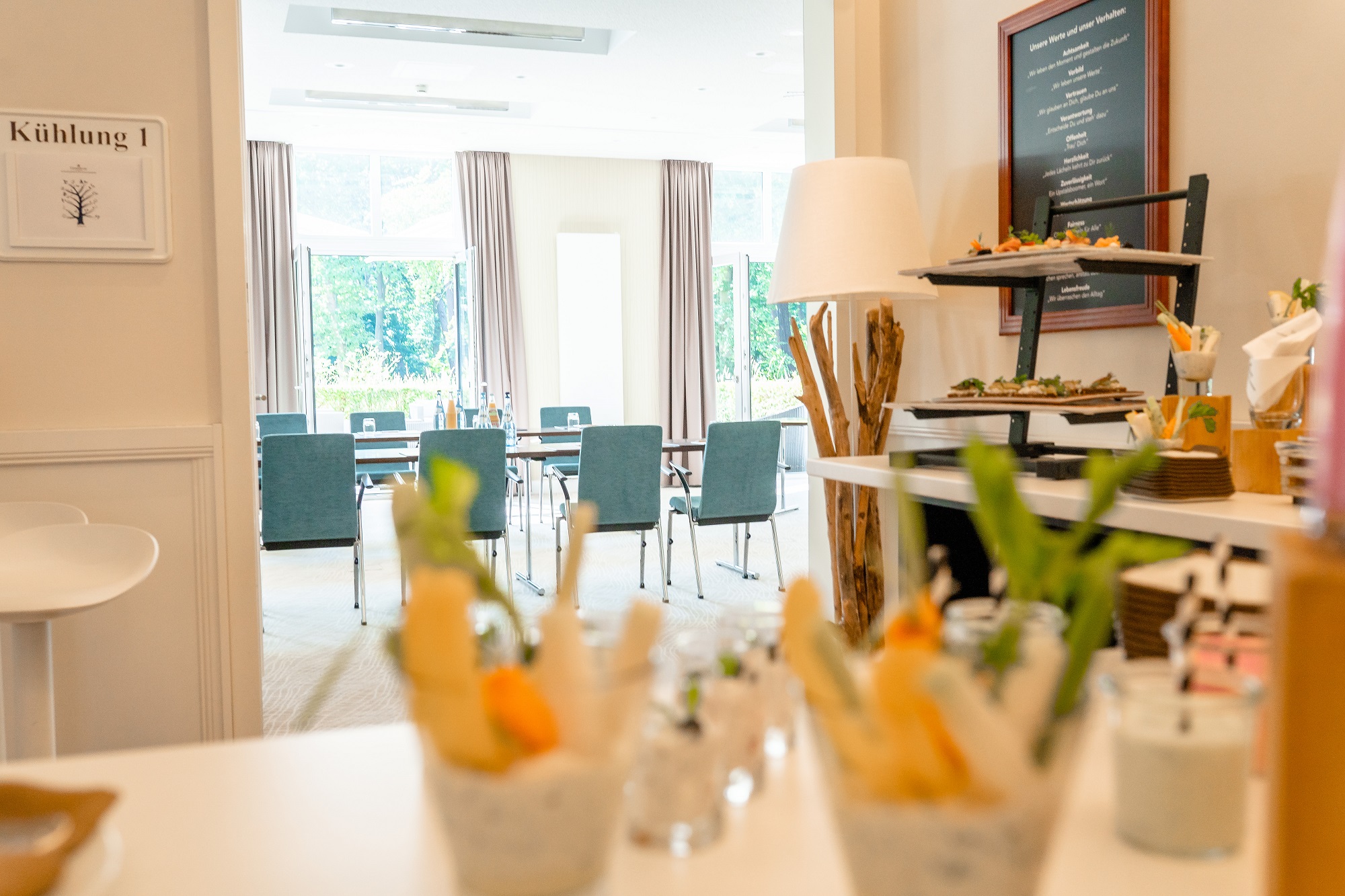 • 3 multifunktionale, kombinierbare Veranstaltungsräume für bis zu 120 Personen mit Blick in den Hotelpark