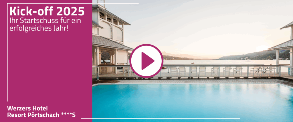 Die Tage werden länger, die Ideen sprudeln – jetzt ist die beste Zeit, Ihr Businessjahr 2025 auf Kurs zu bringen. Warum nicht dort, wo sich das Business fast wie Urlaub anfühlt? Erste Reihe fußfrei am Wörthersee – im Werzers Hotel Resort. Ob Team-Kick-off, Strategie-Workshop oder ein unvergessliches Firmenevent – wir haben das Rundum-sorglos-Paket für Sie.