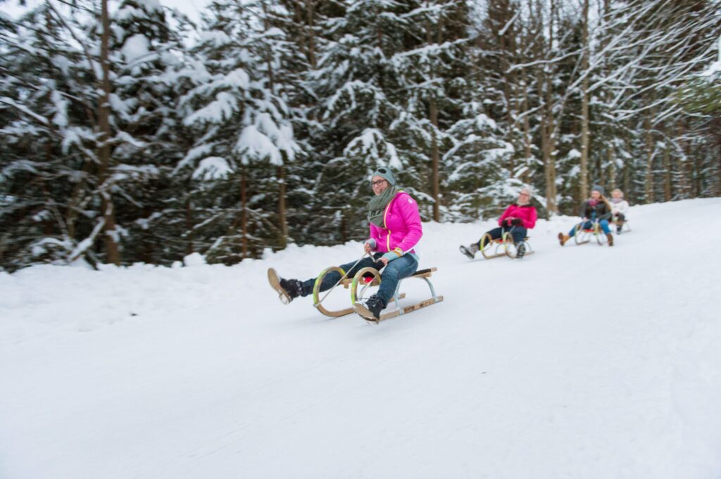 ❄️ Rodeln auf der Hochsteinalm (bei guten Schneeverhältnissen): 3,5 km lange Naturrodelbahn, Leihrodeln vorhanden. Gemütliche Hütteneinkehr.